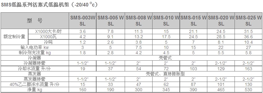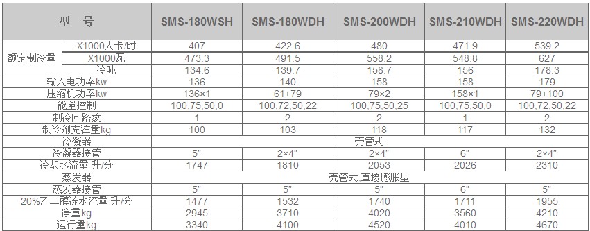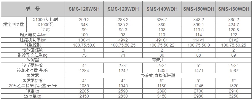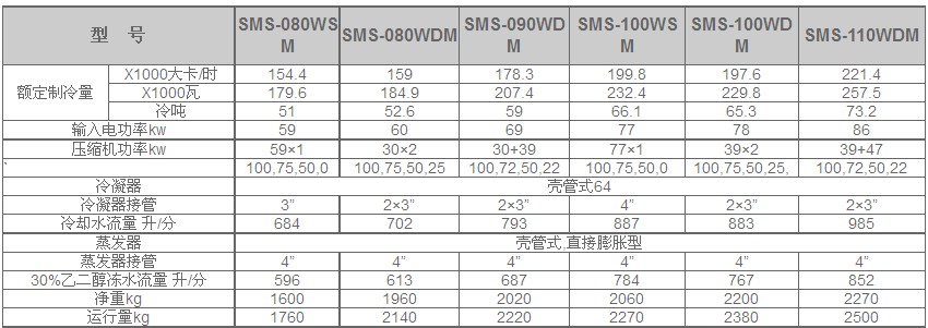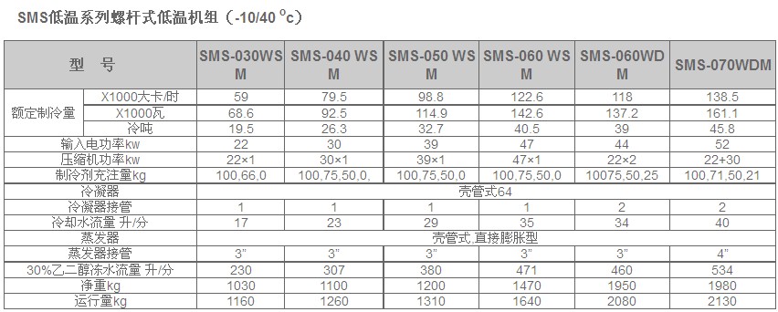 制冷量:0.72-107.36萬kcal/h,采用半封閉螺桿壓縮機,微電腦控制,電器系統及制冷系統元器件均為知名產品,極大地提高了整機的可靠性。機組可根據負荷的要求實現四段能量自動調節運行,有效的節省費用。機組的運行情況或故障報警內容用中文顯示出來,實現自動保護,安裝簡便,安全可靠。機組出水(乙二醇,鹽水)溫度在+5~-25℃之間。