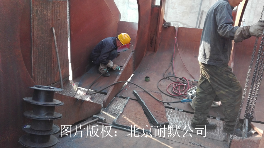 圖(1)北京耐默公司堆焊技術(shù)員劉工正在手工堆焊耐磨件,此次堆焊采用的是KN60耐磨焊絲